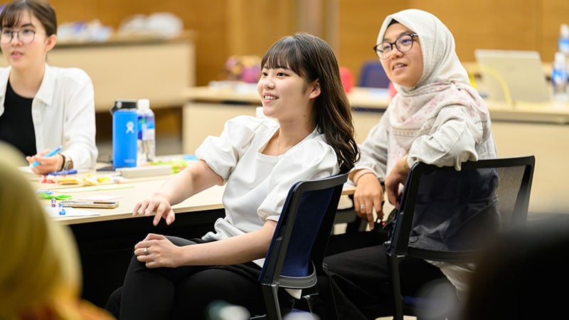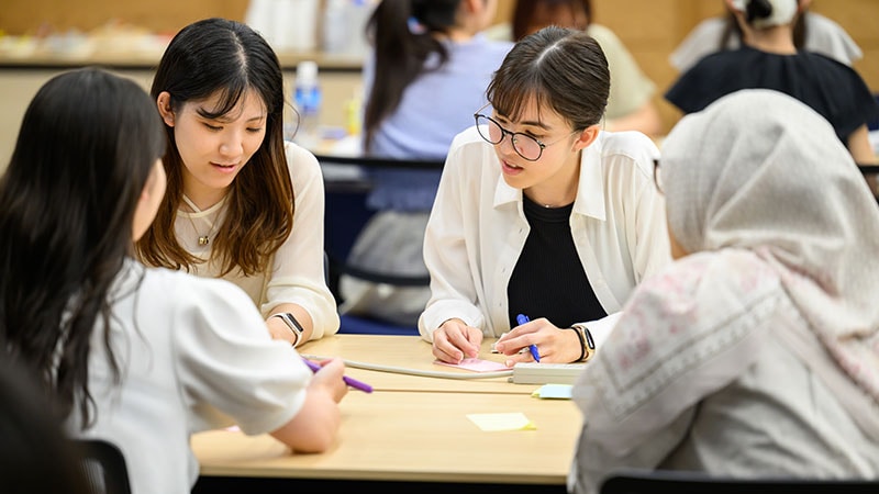 At the start of the workshop, students from Japanese and US universities were divided into six groups. The groups competed against each other to solve the given problems and achieve the highest score. First of all, each group was asked to establish its own discussion rules. They proposed various ideas to make the workshop more productive, such as: ‘Listen to others’ opinions before disagreeing,’ ‘Each person should share at least one idea,’ and 'Above all, enjoy yourselves!’