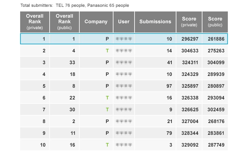 Due to the companies’ information security rules, it was difficult to share the same environment. So, each company ran the competition in their own system, exchanged leaderboard data, and combined results to create a joint ranking.