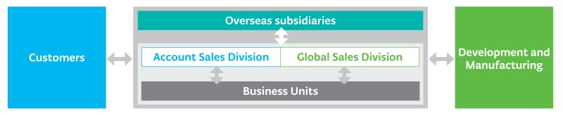 We established the Account Sales Division and the Global Sales Division, and strive to swiftly offer the technology, services and solutions sought by our customers to be the sole strategic partner for our customers. In the Account Sales Division, the needs for next-generation leading-edge technologies in memory, logic devices, foundry and other fields are shared by major semiconductor manufacturers, who are our traditional customers, and the information from this is used for the R&D of new technologies. The Global Sales Division responds to the needs of domestic and overseas customers that handle products for the rapidly growing Chinese market and the industrial IoT market.