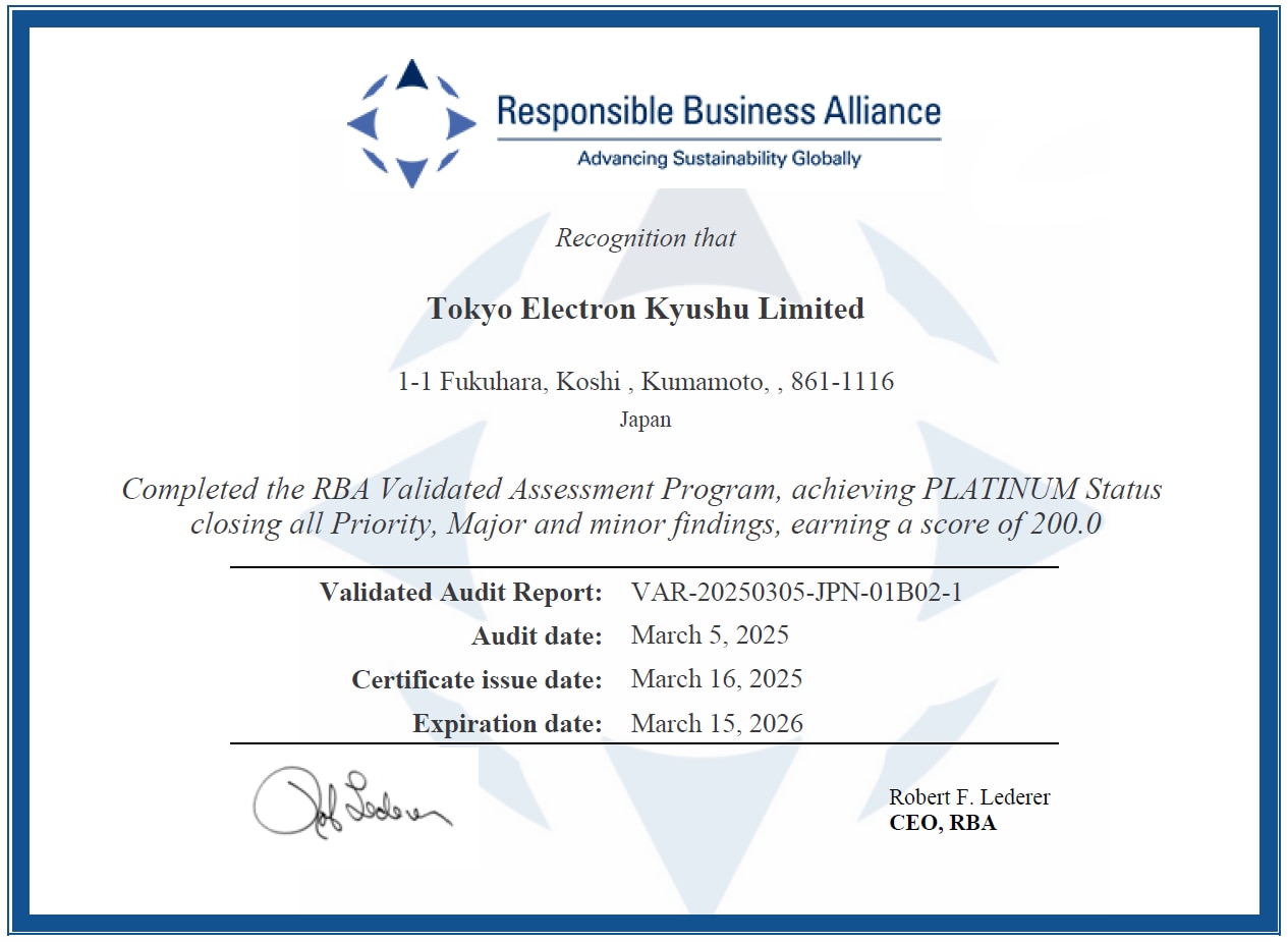 | Tokyo Electron Kyushu | Head Office | Mar. 2025 | 200 | Platinum | |
