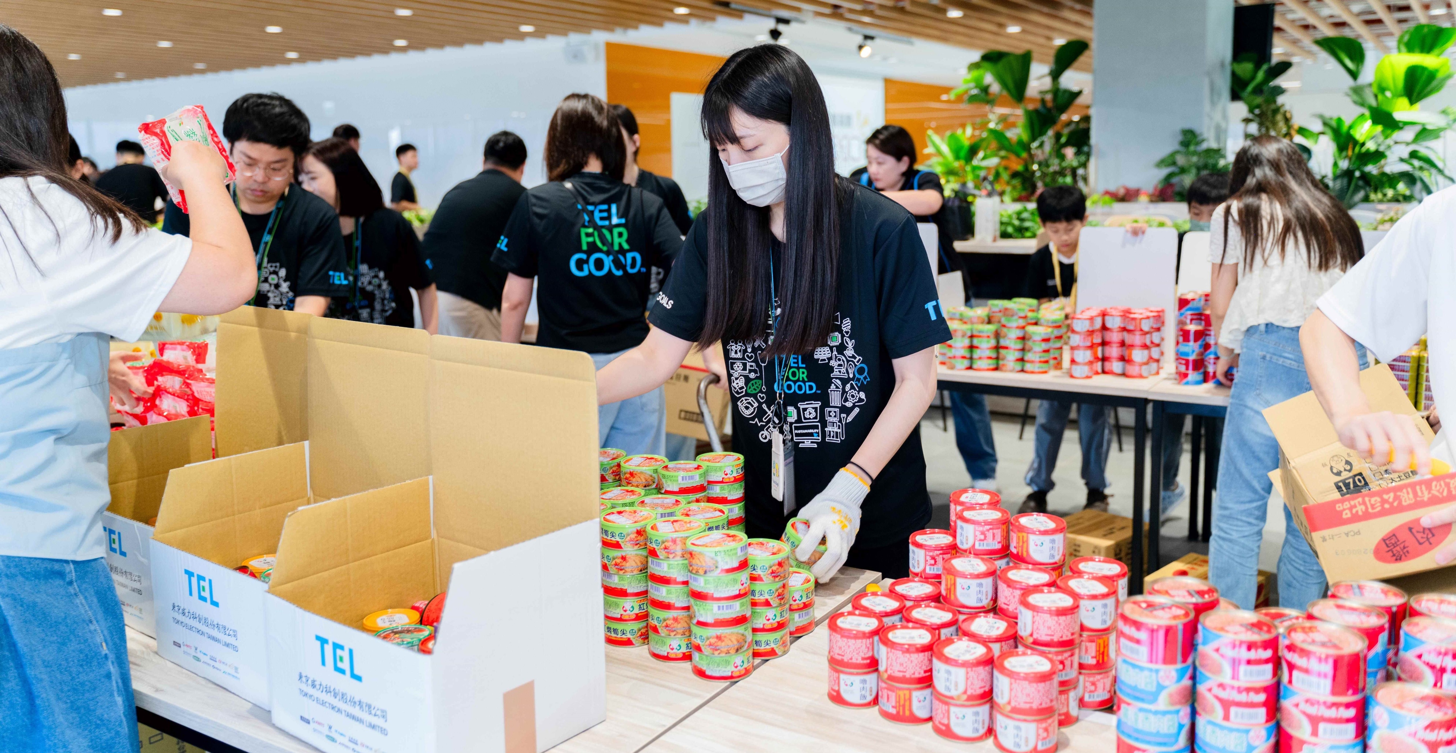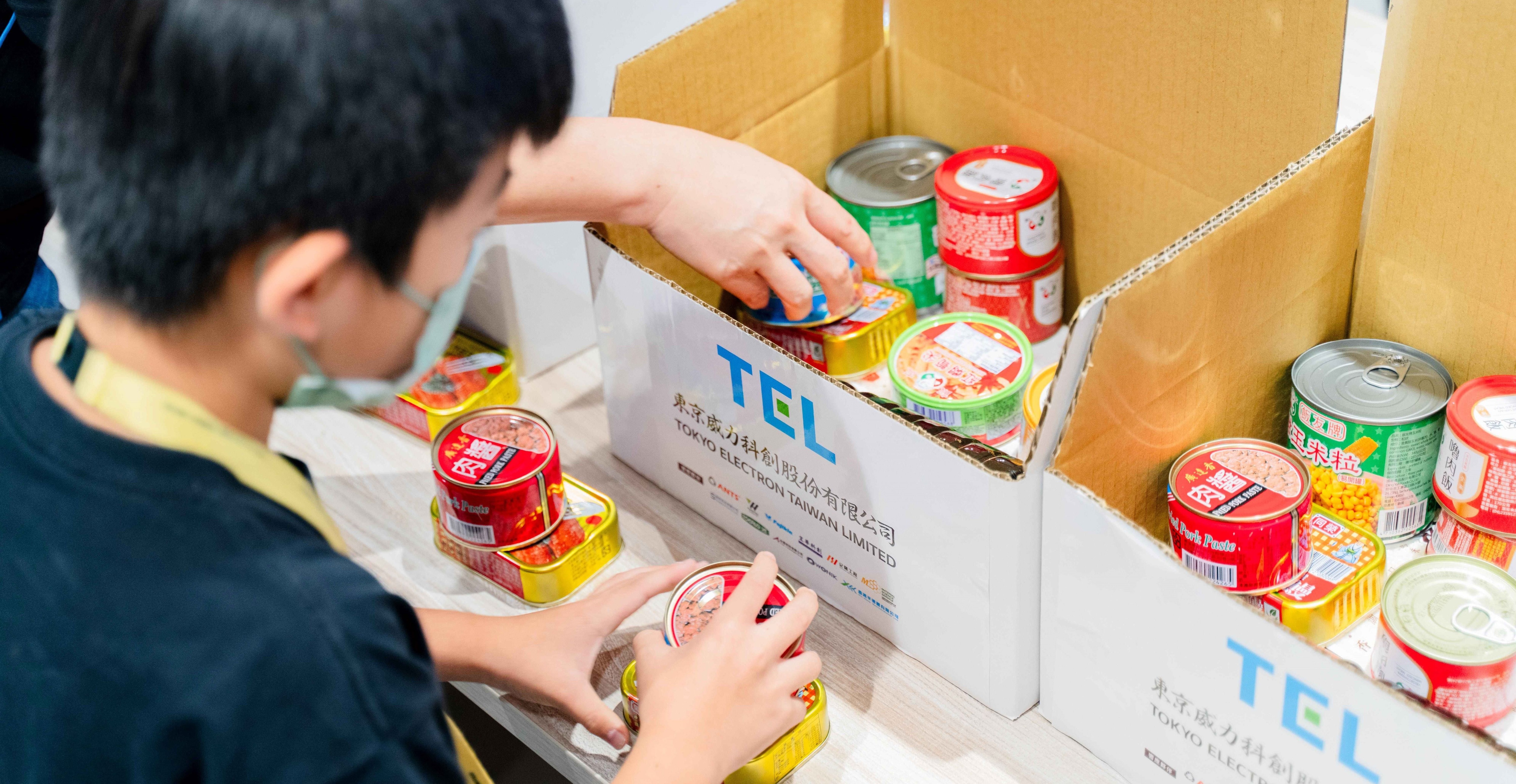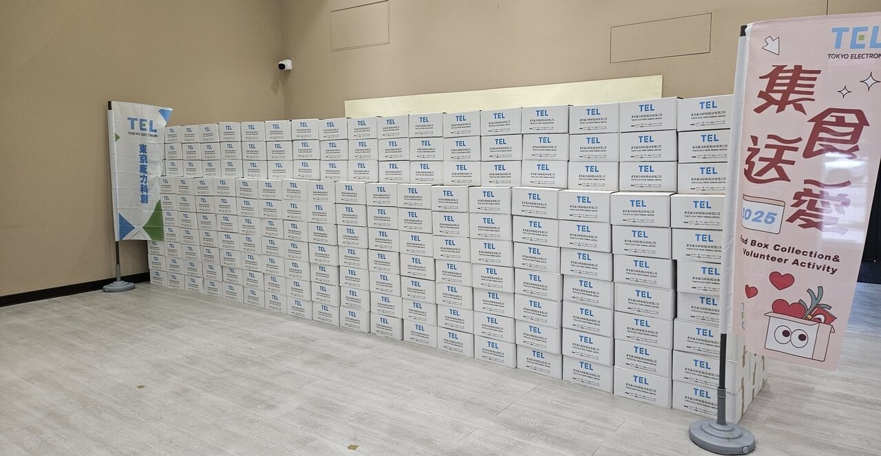 On June 28 and July 12, 2025, Tokyo Electron Taiwan (TET) collaborated with the charitable organization 1919 Food Bank to collect food at its Hsinchu and Tainan offices, and volunteered to pack the collected food into boxes (food boxes).